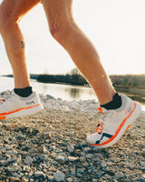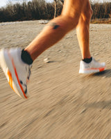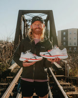 In October 2023, Cameron Balser set out to run 11,170 miles around the perimeter of the United States and he spent the final third of the challenge wearing the Mount to Coast R1. To commemorate his achievement and keep him "moovin' and groovin'" (Cam's mantra), we have created this signature shoe to support Cam. Take inspiration and give back, just keep on running.