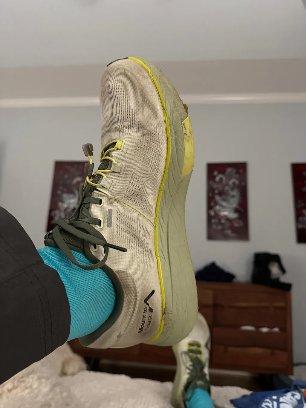 In the spring of 2024, before the shoe’s official launch, British ultrarunner Justin Montague took one pair of R1s to the northernmost point of Scotland to run the JOGLE, a multistage ultra to the most southerly tip of England. Over 17 daily stages he ran 854 miles (1,374 km) setting a time that was almost 40 hours faster than the previous record, and he broke each day’s individual stage record along the way.
